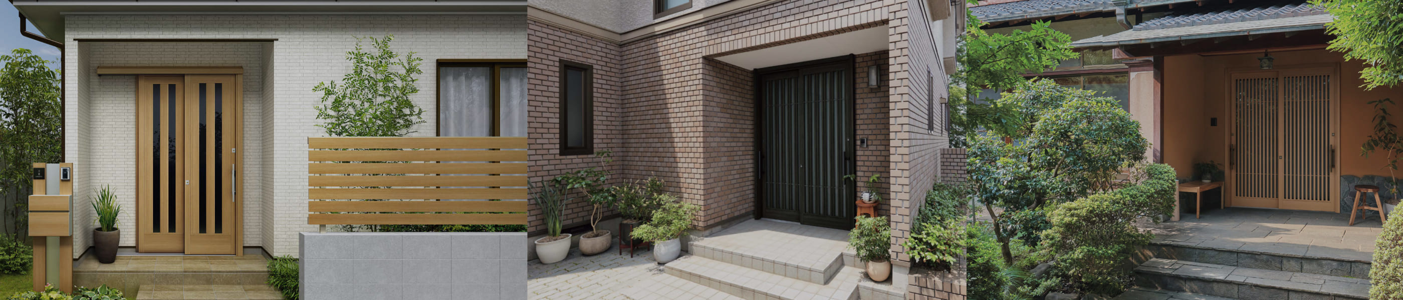 豊富なデザインとカラーバリエーションが揃った「2枚建」「4枚建」と、袖パネルに2枚の障子を引込むことで広い開口幅を確保する「袖付2枚連動引込み戸」から選べます。